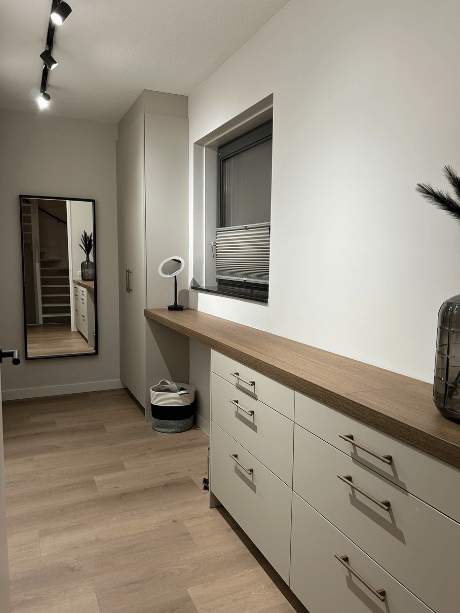 Wij zijn ontzettend blij met de nieuwe kledingkast, ontworpen door Total Home. Het ontwerp is perfect afgestemd op onze wensen en de ruimte, en biedt precies de praktische oplossingen waar wij naar zochten. De indeling is overzichtelijk en zorgt ervoor dat alles een eigen plek heeft. Wat wij vooral waarderen, is het strakke design dat zich moeiteloos aanpast aan de rest van ons interieur. Het is fijn om te zien hoe alles nu georganiseerd is, geen overvolle kast meer, geen chaos meer om doorheen te zoeken.